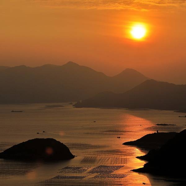 尤其以日出最为壮美。近景浮标竹竿,中景鱼排木屋,远景岛屿帆影,整个场景井然有序花竹村近三沙镇,村子居高临下,水天相连,有着一望无际的景深。近景浮标竹竿,中景鱼排木屋,远景岛屿帆影,整个场景井然有序。尤其以日出最为壮美。