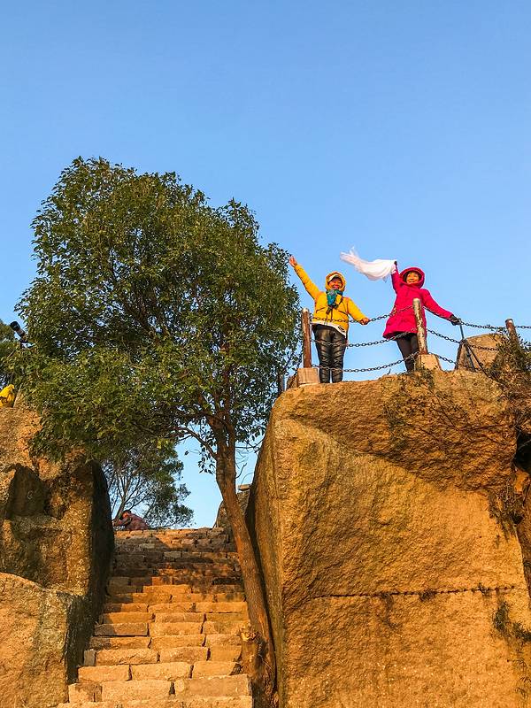 “好美。”对,没错,就是这里,这里就是花竹。因为大雾,我们没有看到这里有很美的景色。不过后面到东壁的时候碰到了一个摄影团,他们说这里那天早上的日出非常壮观。终于!这只小熊派上用场啦~