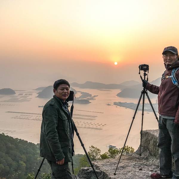可惜天气不好,雾气太大,没有见到花竹最美的景色。天还没有亮我们就来到花竹村附近观景台花竹,位于福建省霞浦三沙镇境内东北部,距城关约40公里,依山傍海,与东边的福瑶群岛遥相呼应,海面上布满浮标竹竿,海上养殖业非常发达,是闽东重要的紫菜产地。每天清晨,太阳从福瑶群岛方向升起,前景后景搭...花竹,位于福建省霞浦三沙镇境内东北部,距城关约40公里,依山傍海,与东边的福瑶群岛遥相呼应,海面上布满浮标竹竿,海上养殖业非常发达,是闽东重要的紫菜产地。每天清晨,太阳从福瑶群岛方向升起,前景后景搭配极佳,是拍摄霞浦日出的最佳地点,被誉为“中国观日地标”,是到霞浦摄影必去的一个拍摄日出的胜地。中央电视台曾经在元旦和国庆两次在花竹现场直播花竹日出的美景,使得花竹名声大振,受到众多摄影爱好者的追捧。天还没有亮我们就来到花竹村附近观景台。这里居高临下,鸟瞰大海,水天相连,有着一望无际的景深。近景浮标竹竿、中景鱼排木屋、远景岛屿帆影、整个场景井然有序,乃天造地设的一处绝好佳境。可惜天气不好,雾气太大,没有见到花竹最美的景色。花竹晨景花竹观景台花竹观景台拍摄现场 展开
