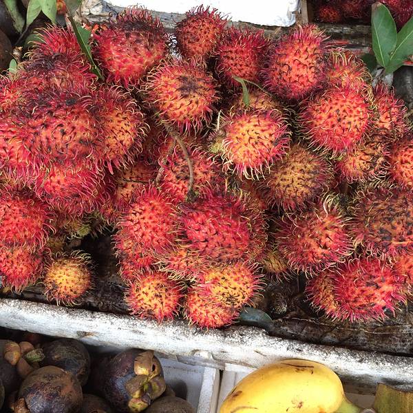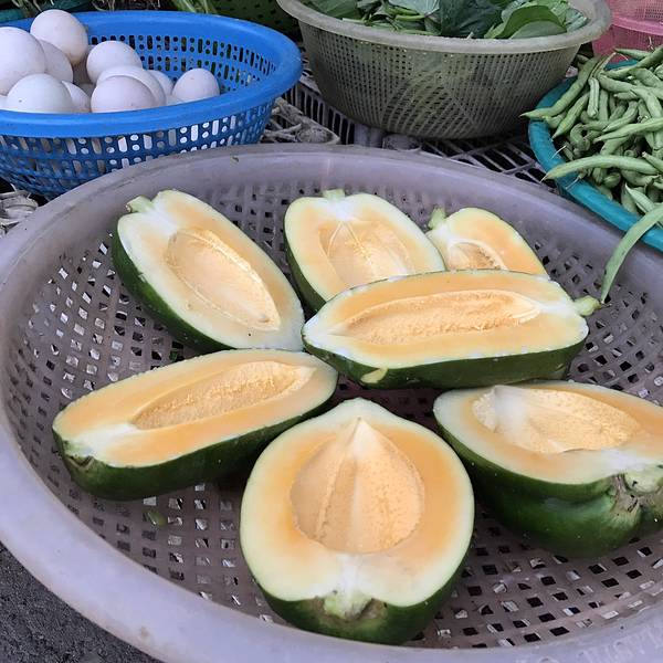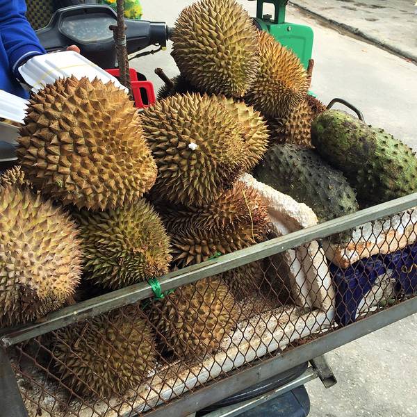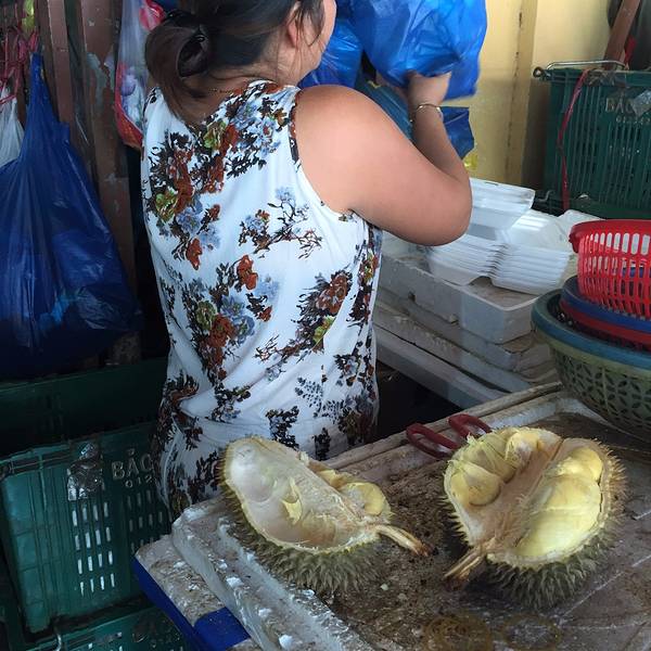 - 紧接着逛了会安市场,在这里买了个小的榴莲,老板开价4万一斤,大的7万一斤,不知道2者有什么区别...
