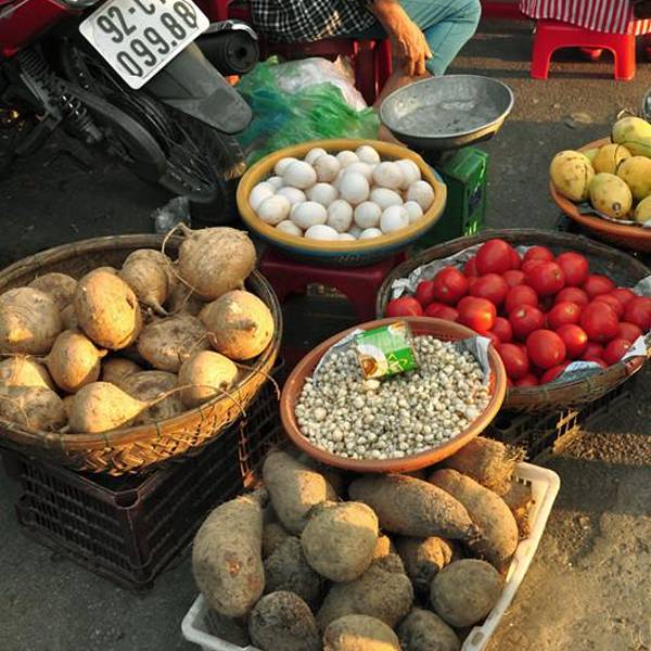 会安的市场很大,品种齐全,东西好吃又便宜。很多外国游客都会选择在市场里解决伙食问题,会安的市场不仅可以买到水果、蔬菜,还可以买到很多调料、服饰、小商品等。