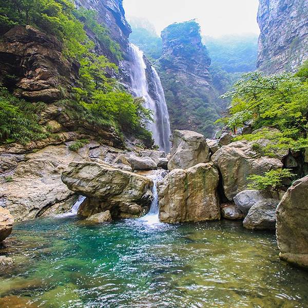 三叠泉也叫三级泉、水帘泉,位于庐山风景名胜区东南九叠谷,被誉为“庐山第一奇观”。它其实并非泉而是瀑布,水流从五老峰北悬崖口落下,冲击三级盘石而形成“三叠”,总落差155米,十分壮美,有“不到三叠泉,不算庐山客”之说。三叠泉四季景色各异,一般在春末夏初时水量较大,可以看到飞流直下的瀑布,是观赏三叠泉的适合时机。而仲夏和严冬时雨水较少,看到的则是秀气柔美的水帘。如果你一心冲着三叠泉的壮观瀑布而来,就一定不能选错时间,否则难免失望。站在三叠泉附近的高处,可以俯视它,一叠的水从20多米高一倾而下,二叠弯曲,然后直入潭中。要近距离感受三叠泉的视觉冲击,还需要下到谷底看三叠,是非常辛苦的过程,建议带点吃的。景区内有缆车可以搭乘,但只能送你到一叠入口。在入口处购买门票后,还要步行1600级的下山台阶才能到达末端。这一路十分险要,千万不要为了看风景而失了脚下的路,尤其雨季时更要小心。站在三叠泉谷底的盘石仰望,可以看瀑布飞洒而下,气势磅礴,声响轰鸣,才觉得此前的辛劳并没有白费。你可以在此拍照留念,记得要注意防水。休息过后还得原路返回,上山比下山更费体力;也可以不走回头路,直接下山出庐山景区,这样的话就建议把这里安排在游览庐山的最后一天。三叠泉还有一个有趣之处,历史上它曾长期未被发现,就连隐居在它上游的李白和在它下游讲学的朱熹都不知道这一胜境近在咫尺,直到后来三叠泉才被人发现。