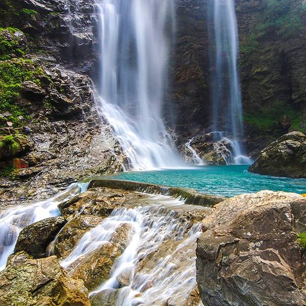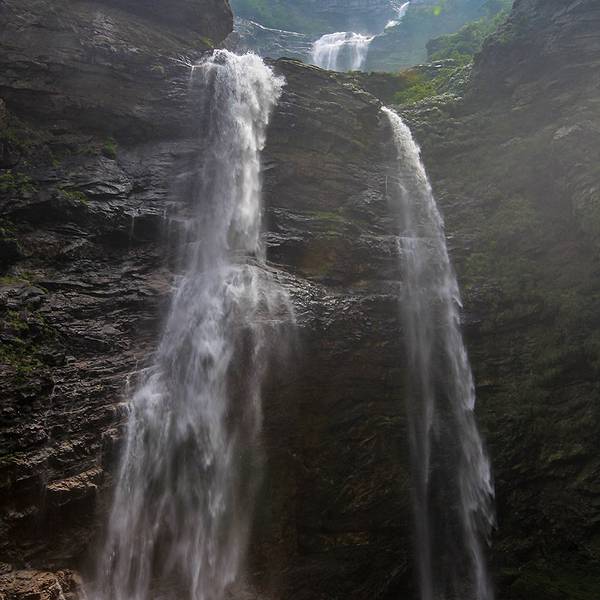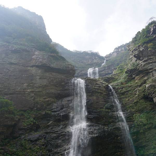 号称“庐山第一奇观”,可以看到瀑布冲击三级盘石形成“三叠”。 下到三叠泉谷底,仰望瀑布飞洒而下,壮观震撼。