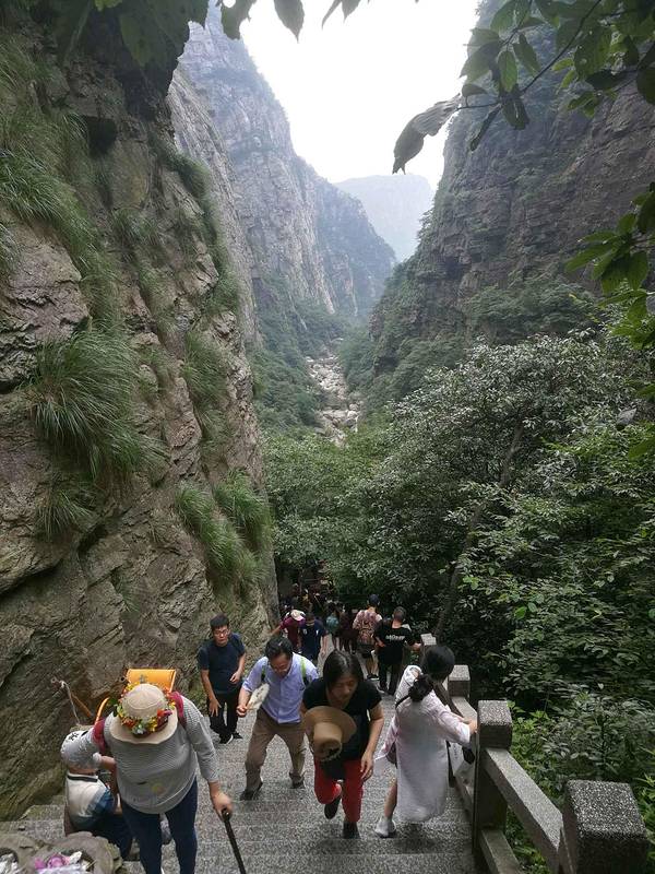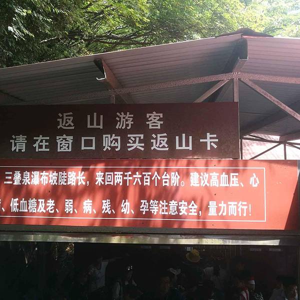 坐观光车到三叠泉景区,有步行和缆车两种形式,但缆车也只是代替你走一段的距离,不能直接送你到瀑布那里,仍需要走一段长路来回三千多台阶,缆车来回80,单程去35元,回55元,看自己的体力情况和自己的行程安排决定。但你在上下台阶实在走不动时,还有很多抬轿子的哦,真的很佩服那些人,抬着人还能走的比我快🙈,一路走走看看沿途风景,就到三叠泉了,瀑布的大小和水期有关,雨水充沛的话,瀑布就大,所以不要时期不对,看到小瀑布,就说李白骗人了,到了瀑布拍拍照玩玩水这就可以往回走了,千万不要再继续往下走了,往下是另一个入口通往瀑布的道路,我就一股劲的往下走,后面累的差点上不来了,道路两边的风景也一般。所以到了瀑布就可以往回走到门口坐车去下一个景点玩了。 展开