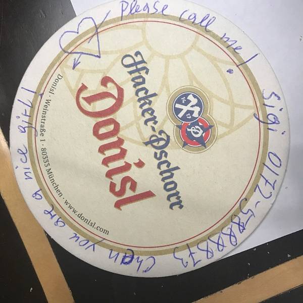 也不知道为什么,在国外很多老外对于亚裔的脸孔会第一反应以为你是日本人或者韩国人,确实去了欧美之后才感觉,其实中国人对欧美人的了解要远远甚于欧美人对中国人的了解。这个奇怪的德国人最后给了我一张写了他号码的啤酒垫,让人哭笑不得。