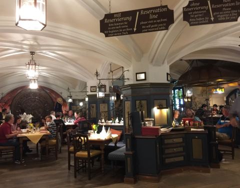 原本是想去大名鼎鼎的宫廷啤酒屋的,然而在推荐之下还是选了玛利亚广场地下的这家RATSKELLER。就是玛利亚广场上,不仔细留意可能看不到这有个门。RATSKELLER,这家地下餐馆规模非常大,据说可容纳上千人同时就餐。