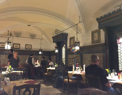 这里又被称为地窖餐厅,它位于慕尼黑新市政厅的地下室。餐厅面积非常大,典型的巴伐利亚传统风味餐厅。这里有慕尼黑著名的烤猪手,香肠,鸭腿和面饼汤。餐厅的氛围非常好,只用小灯和蜡烛,光线柔和,营造出一种温...这里又被称为地窖餐厅,它位于慕尼黑新市政厅的地下室。餐厅面积非常大,典型的巴伐利亚传统风味餐厅。这里有慕尼黑著名的烤猪手,香肠,鸭腿和面饼汤。餐厅的氛围非常好,只用小灯和蜡烛,光线柔和,营造出一种温馨的就餐环境。