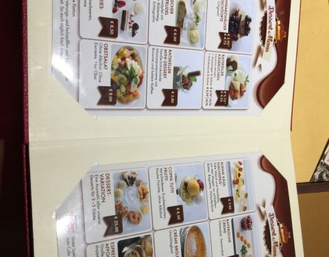 游客成堆的地方的餐厅就不能指望太好吃啦。这家开在地下一楼,楼上门面虽不起眼,地下却有1200多个位子,各种大小包厢,圆台,吧台,四人雅座等应有尽有,环境雅致,基本上就是个吃氛围的店。味道跟德国乡下小镇...游客成堆的地方的餐厅就不能指望太好吃啦。这家开在地下一楼,楼上门面虽不起眼,地下却有1200多个位子,各种大小包厢,圆台,吧台,四人雅座等应有尽有,环境雅致,基本上就是个吃氛围的店。味道跟德国乡下小镇的比差了很多,量也不大,价格更是德国小镇的翻倍还不止。没啥服务,还死皮赖脸的问你要小费。跟德国小镇味美量大朴实的餐厅真是没得比。我点的那堆菜里最难吃的就是南瓜汤,完全没有南瓜味,估计就是盐加水加南瓜粉冲出来的。通常德国餐厅的南瓜汤都有面包送,这家抠的连面包都没有。我点的那堆菜里,最好吃的是巧克力慕斯蛋糕,实实在在的是巧克力慕斯,比另外一个黑森林蛋糕好吃。黑森林蛋糕有点酸的,主要是放的腌制水果酸的。题外话,这家店开在地下,所以没网。唯一比别家好的地方是菜单有图,点菜方便许多,这在德国还真难得。