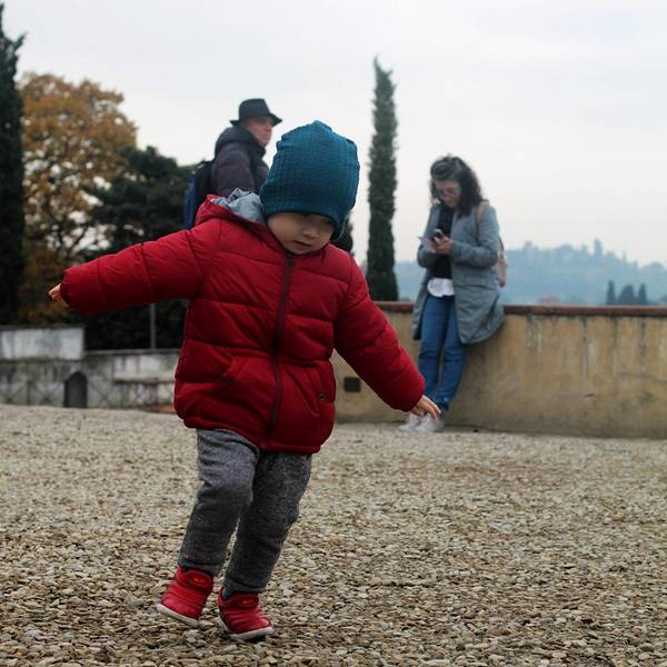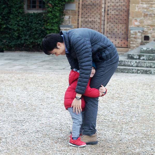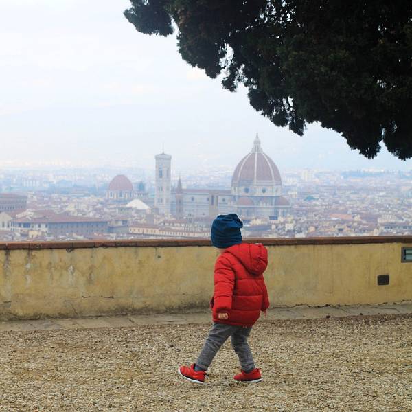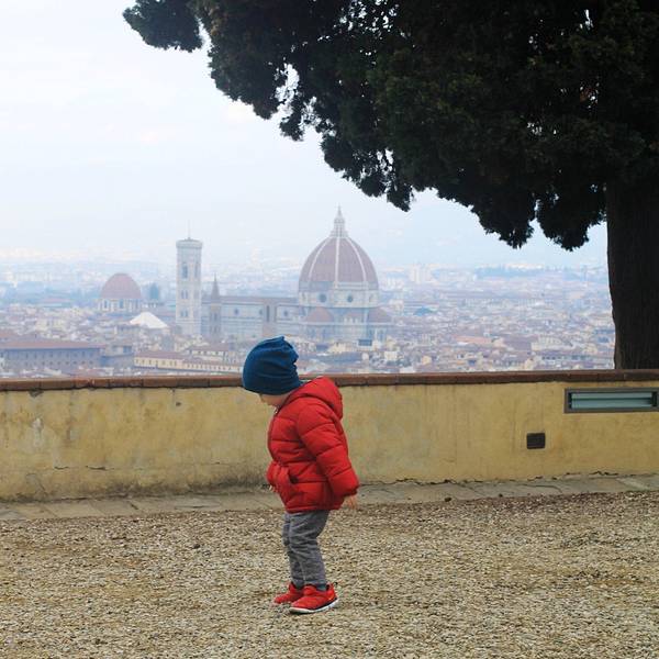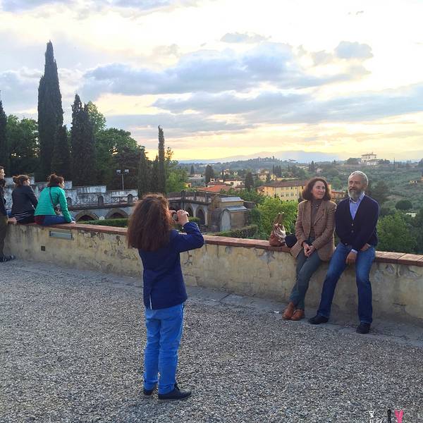 爸爸在给妻子和儿子拍照,旅途中比风景更美的是人。充满绿意与宁静的角落,花儿独自绽放在等待日落的时候我们自米开朗基罗广场上行,爬到更高的山顶,到达圣米尼亚特教堂。这座整个城市海拔最高的教堂建于11世纪,是为了纪念一位佛罗伦萨早期殉道者修建的。