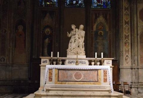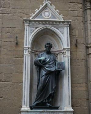 这里起初是个谷物市场,后来成为佛罗伦萨各大行会的教堂。各个行会分别负责捐建各自主保圣人的雕像,来修饰教堂的正面,其中不乏名家之作,如“天堂之门”的作者吉伯提,他雕刻了羊毛贸易商人行会的主保圣人施洗...