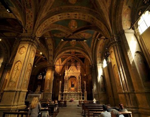 靠近阿诺河边的教堂,走过去就可以到百花大教堂。这座教堂的外表看上去有点像钟楼,到了准点还有钟声哦,穹顶非常高,在教堂里面感觉个人很渺小。
