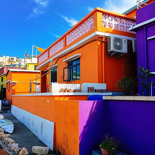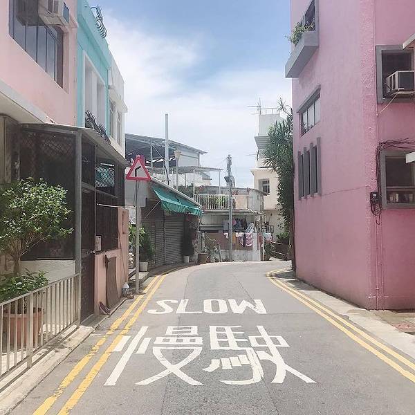 石澳的房子很像日本的房子,单独一小栋,房子外墙都被刷成五颜六色,充满小清新的气息,这样配色的房子让我想到之前去过的越南大叻和厦门鼓浪屿。石澳的小道上有很多印有“慢驶”的标志,随便一拍,就是ins超火的美照啦。