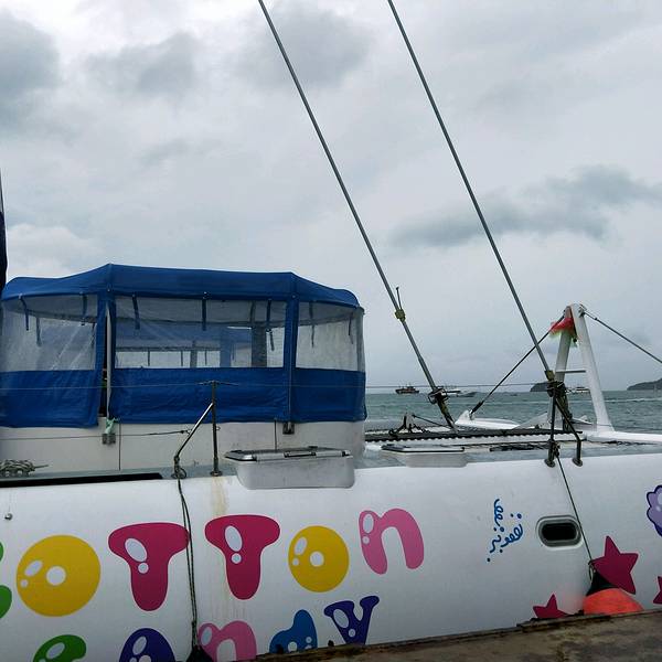这是我们定的彩虹号帆船,还好吧整体出海的感觉还是不错的,大家都享受这大自然的鬼斧神工