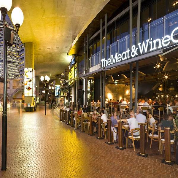 18:30 Meat & Wine —— 品尝美味澳洲牛排大餐 澳洲的牛排一直享有盛名,所以来到悉尼怎么能不尝尝地道的澳洲牛排呢! Meat & Wine餐厅的位置极佳,就在情人港的IMAX楼下,两楼的座位可以透过玻璃墙宽视角俯瞰情人港两侧的美景。