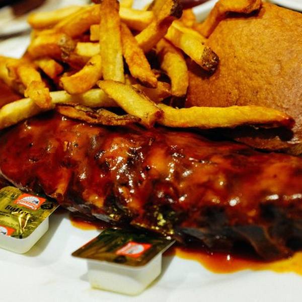 在纽约?想体验西部风情?那么这家店一定不能错过!纽约好吃的烤肉店很多,食客们对肉的口感和酱料的要求也各有不同。和韩国、日本的烤肉店不太一样,这间连锁烤肉店有着纯美国西部风情文化,食客不用自己动手烤,只管吃就好。这家店最吸引顾客的是他们的烤肉酱以及那霸气十足的分量。平日里喜欢大口吃肉的朋友,一定要将这间店列为纽约美食行程的首选!到这家餐厅,推荐必点的是BBQ Ribs Combo(烧烤大肋骨套餐),套餐里包含三、四条牛的大肋骨,一块秘制玉米蛋糕,炸薯条/ 酸奶油烤全土豆/ 黄米饭三者选其一。这家餐厅的醉鸡翅也很有特色,酒量不好的人也许吃两块就会晕倒喔。奶昔也是值得一试的美味,有加酒和不加酒两种选择。