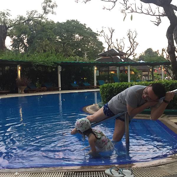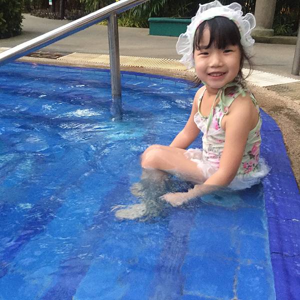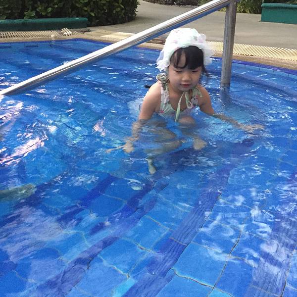 水温虽然很低,但女儿对泳池的向往已大过切!跳!you jump!I can't jump!哈哈