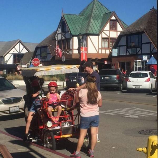 实用 尽管我去的时候是感恩节当天(提醒大家,感恩节圣诞节绝大多数美国景点都不开门,所以这两天建议游览...丹麦小镇Solvang简直让我爱不释手,比圣巴巴拉好玩!圣巴巴拉这个西班牙小镇除了房子是五颜六色外没给我留下太多印象。 但是这个丹麦小镇真的适合细细游览,建议大家在这里停留2-3小时,好好逛逛这个童话世界。尽...丹麦小镇Solvang简直让我爱不释手,比圣巴巴拉好玩!圣巴巴拉这个西班牙小镇除了房子是五颜六色外没给我留下太多印象。 但是这个丹麦小镇真的适合细细游览,建议大家在这里停留2-3小时,好好逛逛这个童话世界。尽管我去的时候是感恩节当天(提醒大家,感恩节圣诞节绝大多数美国景点都不开门,所以这两天建议游览不需购票的自然景点),所以小镇里大部分的酒庄甜品屋工艺品店都不开门有些遗憾,但是我还是沉浸在了美轮美奂的童话世界里。这里家家有草,户户有花,门廊顶上爬满绿油油的蔓藤,小屋旁边竖着悠闲旋转的风车,远处是烟雾缭绕的群山,让人不由得明白安徒生写出童话故事的原因。小镇可以租四轮自行车,两个宝贝坐前排, 爸妈在后面骑着,别提多开心了。 展开