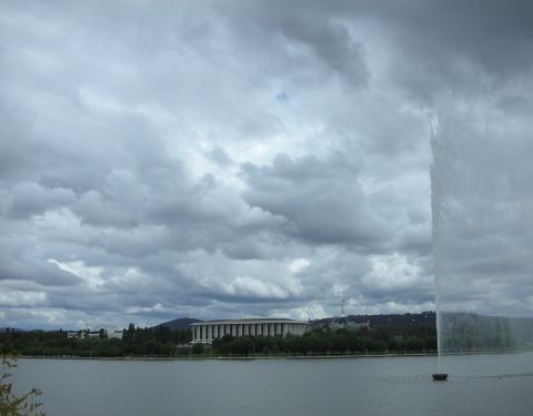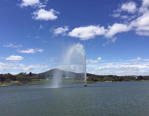 驱车3.5小时到达了世界三大花园城市之一的堪培拉,格里芬湖看喷泉
