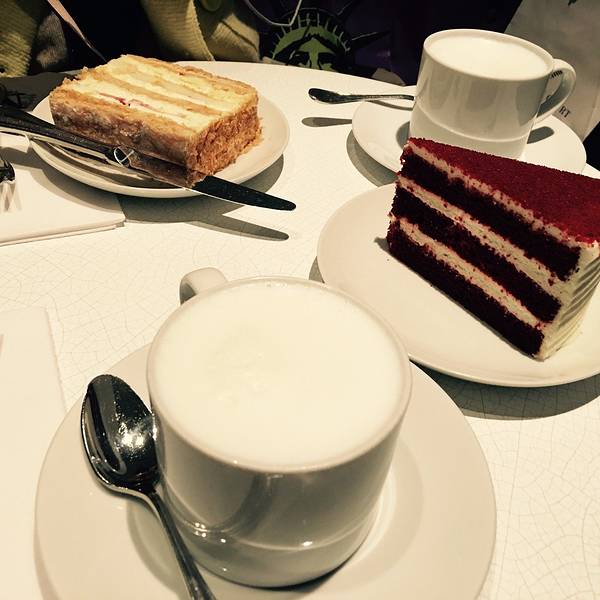 Lady M算是近年来纽约红火到不行的蛋糕甜品店了,已经能看到朋友为了吃了她家的千层蛋糕排N久的队伍,这次去纽约发誓就一定要去尝尝。虽然她家的千层蛋糕是最出名的,但印象中不是起家的产品。周末的一大早我们都没有睡懒觉就去了Lady M,哪知道门口已经开始排队了,要知道这可是深秋的周末早上10点半多,连店都还没有开门呢,大家都已经在排队了= = 好在我们来的早,我们站进队伍里面以后后面迅速的又接着排队。我们点了一份抹茶千层,一份checker,一份原味的奶油千层,再加上咖啡和热巧克力,美美的吃起来。蛋糕做的真的很细腻,口感上的处理把握也是很到位。据说老板是在日本学的技术,但完全不用担心日本的甜度,已经做了相对应的改良了。而且价格不是很贵,基本上一份蛋糕在10美金以内,不是太奢侈的。店面靠近洛克菲勒中心大厦,可以做地铁D号线在洛克菲勒中心下车,步行6,7分钟就能到了,周围停车有点困难,还是公共交通比较好。