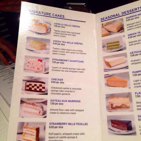 号称纽约最好吃蛋糕,慕名而来,蛋糕都是当天现做的,很新鲜。来晚的话可就什么都没有了,镇店之宝没吃上[流泪][流泪]点了抹茶和红丝绒,抹茶千层绝对大赞。一刀切开,立刻显露出至少20层比纸张还要轻薄的酥软蛋...号称纽约最好吃蛋糕,慕名而来,蛋糕都是当天现做的,很新鲜。来晚的话可就什么都没有了,镇店之宝没吃上[流泪][流泪]点了抹茶和红丝绒,抹茶千层绝对大赞。一刀切开,立刻显露出至少20层比纸张还要轻薄的酥软蛋皮,夹着极滑顺绵密的奶油,入口即化完全不甜腻,最后又打包2个明早当早点吃[偷笑][偷笑]