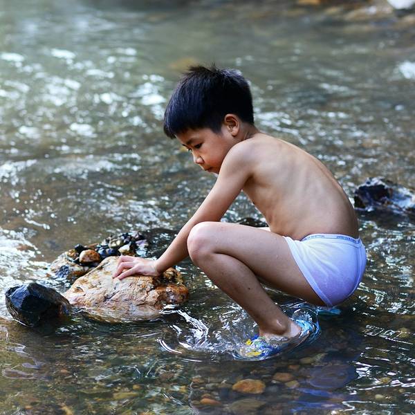 清澈见底的小溪太治愈了!小朋友捞鱼抓蟹玩疯了,大人也能踩水纳凉,找回童年快乐!