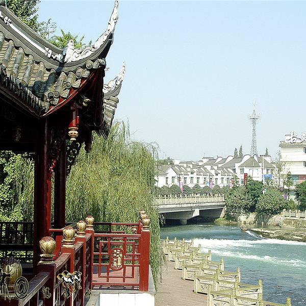 古镇无工业污染企业,镇内的柏条河和徐堰河两大河流是全国饮用水质最优的河流,也是西南最大的自来水厂——成都市自来水六厂的水源提供地,承担着成都市90%以上的供水。至今古老的水车仍在转动,名副其实的“古蜀水乡“!三道堰古镇充分利用了得天独厚的水资源,筑成依河而居、傍花随柳的居家环境,形成了“川西民居,水乡特色” 的生态风格。【古镇特色】古镇内有堰桥、堰桥文化广场、“三道堰”休闲公园、桥头花园、“水乡坊”、“滨河坊”、”锦水坊“等古牌坊。以“亲水性” 为主题的呤诗楼、品茶楼、书画楼、棋牌楼、饮食文化楼、观景楼沿柏条河两岸鳞次栉比。古镇内错落有致的青瓦屋顶,高低有序的封火山墙,青石河栏傍河护佑,卵石小道逶迤弯曲,尽显的是传统与现代共生,自然同城市结合的典型川西民居。古镇的青瓦、白墙、小桥、流水、白鹭、垂杨,鸟语花香,景色清幽,是一幅安宁祥和的风情画卷。【美食】三道堰镇的饮食文化丰富多彩,“黄辣丁”、“炒河虾”、“高大肉”等特色菜名扬千里,招徕八方美食家纷至沓来。河畔的休闲港、饮食楼、水上人家更是节假日休闲旅游的好去处,远离了大都市的喧嚣,在绿草茵茵、鸟语花香的秀水河畔,让人产生意境瑕想、平和安详的情趣;游客还可在生态农业园区采摘蔬菜,置身其中境深意长,令人流连忘返。下午到河边悠闲的喝茶,让人浮想联翩,真是:“西塞山前白鹭飞,桃花流水鳜鱼肥,青箬笠,绿蓑衣,斜风细雨不须归。”这真是一个处处引发人之幽思幻想产生美感联想的古蜀水乡! 展开