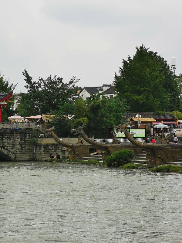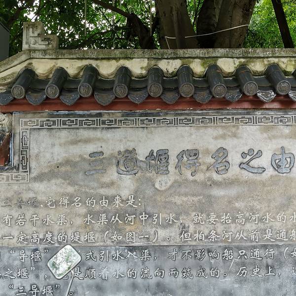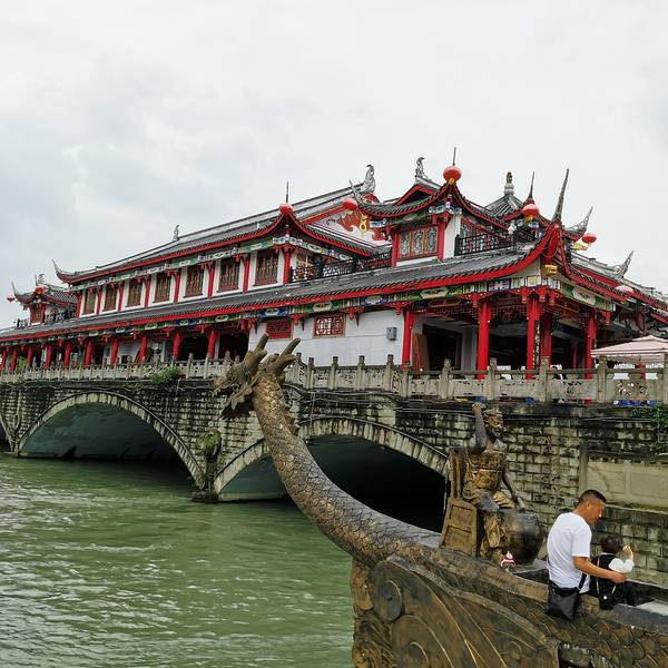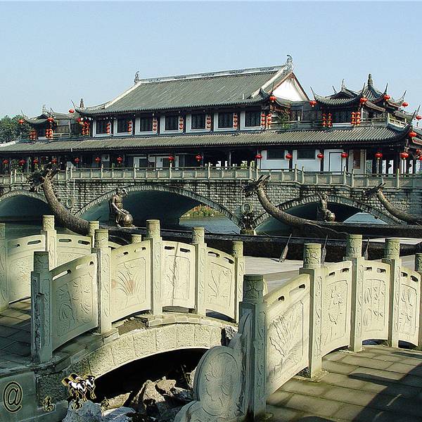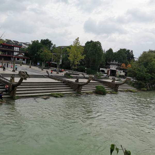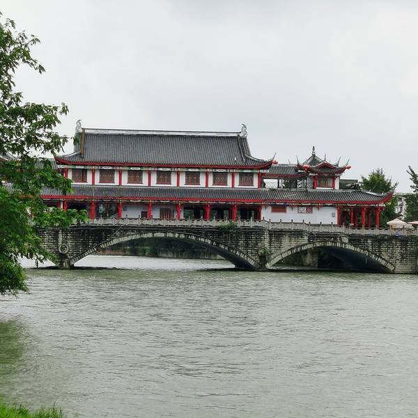 这水潭真的像极了小石潭,只是不像小石潭清冷透骨,而是热闹非凡,似乎全镇的老老少少都集中在这里,钓鱼的,玩水的,其乐融融。骑牛顽童、撮鱼雕塑、吐水龙头、民国铜人……展现出古镇一道道亮丽的风景线。古镇因水而灵动,走在小镇的任何地方都可以听到哗哗的流水声。走完文昌街,即见到一座拱桥形建筑,这就是三道堰五十多年前柏条河上的水码头旧址,古码头的一个缩微重现。当年畅通的河道使周边商贸焦聚于此,这里便成了船筏停泊、货物装卸集散之地。水上交通体系的发达使这里成为了周边城镇的商贸中心,经济曾经繁荣一时,给后人留下了丰富多彩的码头记忆。堰桥——堰桥是三道堰的标志性建筑,始建于2005年。有三个桥拱,桥长66米、宽20米、总高16.9米,因紧邻三道堰的第三堰而得名。该桥是一座有三列走廊的仿明清建筑廊桥式风景桥,虽不及都江堰南桥,但也修得高大雄伟,古建筑色彩浓厚。主廊两侧各有两排大红漆柱形成侧廊,桥廊油漆彩绘,雕梁画栋,鲜艳夺目。廊柱挂着不少楹联,与堰桥古朴风格相适应。主桥头重檐楼阁飞檐凌空,是一座集交通、观景、休闲于一体的景观廊桥,也是成都地区为数不多的廊、桥结合的建筑典范。纵观桥内,赤柱朱槛,华彩宽敞;仰望廊顶,画栋雕梁,色彩明艳。步上廊桥,清风徐来,倚栏远眺,视野开阔,古镇美景尽收眼底:足下流水欢歌,堤岸绿树青翠,古镇街巷幽深……如今,堰桥既是两岸往来的通道,又是当地群众和外地游客休闲、赏景的好去处,更夏季纳凉的好去处。三龙吐水,三道堰文化广场,很多游客在这里拍照。三道堰得天独厚的水资源,千年来古老水乡的深厚底蕴,吸引来了成千上万的游客,置身其中,感受那独具一格的小桥、流水、人家的美丽风景;在绿草茵茵、鸟语花香的秀水河畔休憩、品茗、聊天、观景,远离了大都市的喧嚣,忽添生平和安详的情趣,让人流连忘返。三道堰不失为节假日携带家人,邀朋约友休闲旅游的好去处。 展开