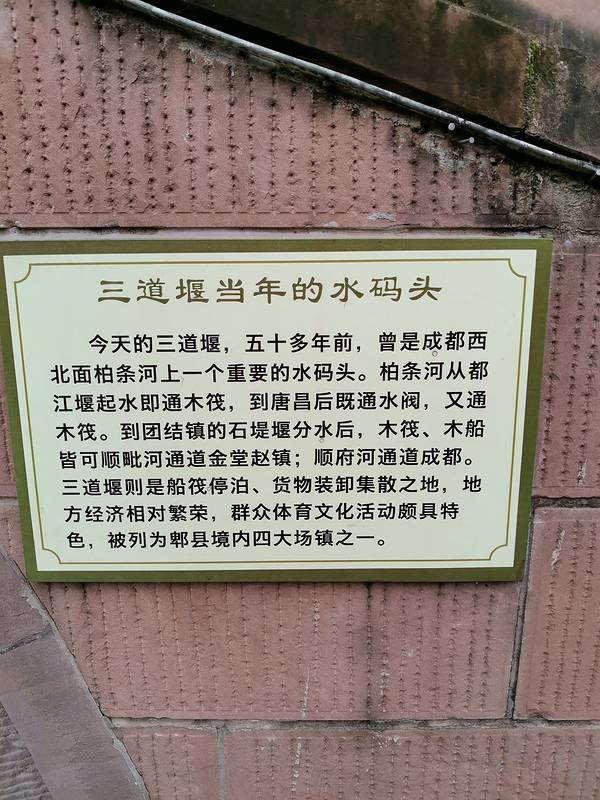 三道堰镇位于成都市近郊,距成都市22公里,距成都市卫星城郫县仅6公里,三道堰镇因用竹篓截水做成三道相距很近的堰头导水灌田而得名,是一座具有一千多年历史的川西古老小镇,历史上是有名的水陆码头和商贸之地。都江堰内江的两大支流——柏条河、徐堰河纵贯镇域全境,水源丰富,水质清澈,亲水性好,生态环境优美,素有”古蜀水乡“之称。【清洁水源】