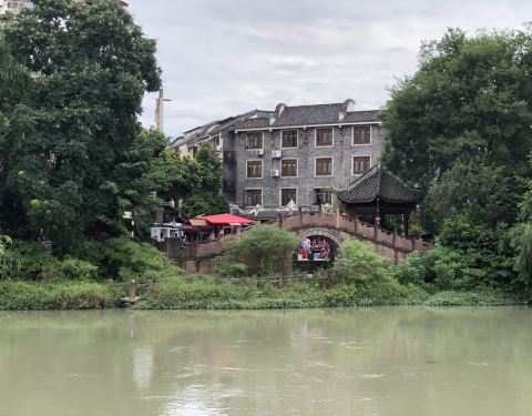 千年来古老水乡的深厚底蕴,吸引来了成千上万的游客,置身其中,感受那独具一格的小桥、流水、人家的...文昌街的街口,正对着一座廊桥,叫做堰桥。桥下河水悠悠,桥上凉风习习。喝茶的,卖菜卖鞋袜的,别有一种本地生活情趣。小镇充分利用了得天独厚的水资源,引水入街,建筑以亲水性为主题,以清末民初为文化背景,...文昌街的街口,正对着一座廊桥,叫做堰桥。桥下河水悠悠,桥上凉风习习。喝茶的,卖菜卖鞋袜的,别有一种本地生活情趣。小镇充分利用了得天独厚的水资源,引水入街,建筑以亲水性为主题,以清末民初为文化背景,临水而筑。错落有致的青瓦白墙房屋,高低有序的封火山墙,徽派建筑特征与传统川西民居风格温情结合,精心将那些消失尘封的建筑群落得以再现,着力重塑了那些珍贵的历史遗迹,丰富历久弥新的历史文化内涵,写意式还原那段时期三道堰作为川西重镇的繁荣历史景象,营造出一幅怡人的水乡风情画卷。在三道堰古镇,有一条文昌街,是一条步行街,这里浓缩了三道堰的风土民情。走进文昌街,首先迎接你的便是水。清幽的树木山石之间,瀑布似的流水奔泻而下,注入山石下面的河道,河道曲曲弯弯,穿街而过。河道上面回环曲折的走廊,给这幅山水增添了画意。顺河道往前,会看见一棵大树下,有一湾碧水,水里几十上白条的金鱼,悠闲地游来游去,令你不自禁会想起柳宗元《小石潭记》里的句子: