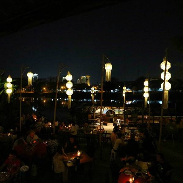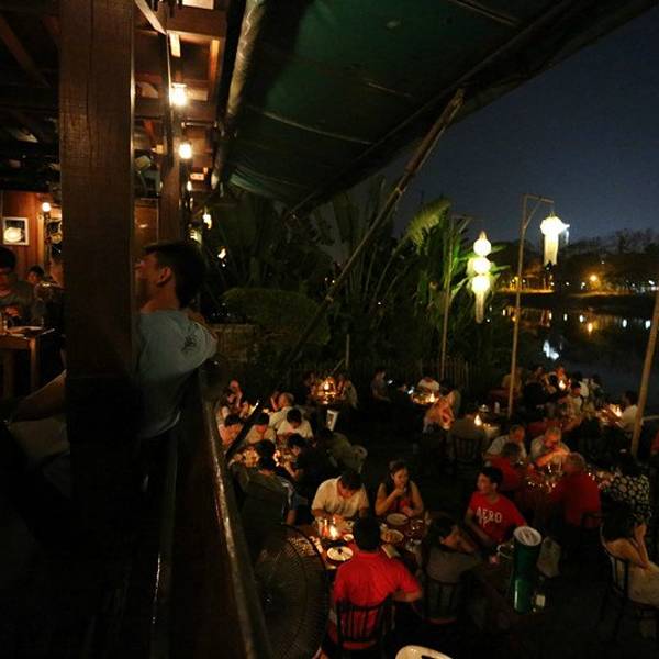 在宾河河畔有许多很受当地人欢迎的夜景餐厅,大部分的餐厅还可以让顾客在船上用餐。在75分钟的航程中,可以尽情享受佳肴,不但新鲜有趣,更充满了浪漫的情调。而为了服务越来越多的中国游客,店家还很贴心地准备了中文菜单,方便顾客点餐。这家经营超过三十年的餐厅酒吧,不仅提供精致美味的餐饮服务,并且有全清迈独一无二的船上餐厅和夜间游河行程,特别适合夫妻和情侣共度温馨浪漫的夜晚。此外The River Side还有顶尖乐团现场演奏摇滚、流行、雷鬼、Rap、嘻哈、放克和灵魂等热门音乐,热闹欢腾的派对气氛保证让您的心情high到最高点!