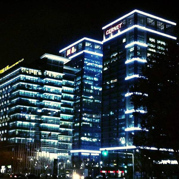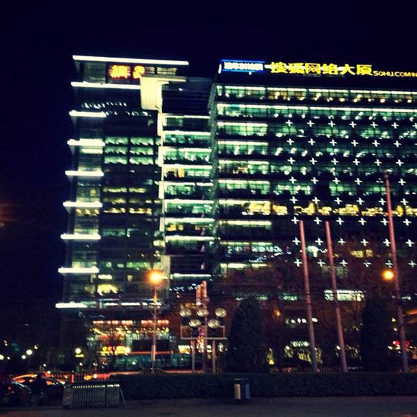 - 著名企业,搜狐、网易。晚上的搜狐网易大厦灯火通明。灯火通明
