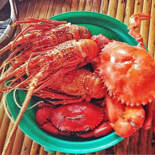 这个景点的亮点就是爬到山上制高点,拍张镜湖的全景。山脚下的湖可以浮潜,鱼类以箭鱼为主。从这里一直往山上爬,才能拍到镜湖的全景。刚爬一半,开始下起大雨啦!!雨天路滑,还好坚持着爬到了最高点,经典明信片来啦!插句话,其实我觉得菲律宾人民还是很淳朴的,这要是在国内,此处绝佳的拍摄地,绝对是要收费滴。山脚下景色其实还是很美,只是因为刚刚下雨,湖水很浑浊,里面也没什么鱼,我们下去扑腾了几下就返回了。从山上下来的时候雨下的更大了,当时很是担心放在座位上的物品被淋湿,没想到回到船上,TOTO他们已经贴心的帮我们把贵重物品放进了船舱,不但如此,还帮我们把已经淋湿的衣服牵了绳子晾晒起来了。当时真是怎一个感动了得。我们的午餐也已经加工完毕,饥肠辘辘,又大雨浇身,只顾上拍了下螃蟹龙虾。 展开