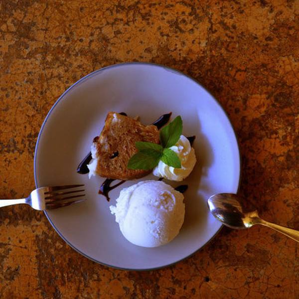 这是一家装饰得很缤纷可爱的餐厅,从招牌、楼梯两旁的彩绘、吧台的摆设、墙上的装饰,甚至点餐的Menu,都充满了令人眼睛为之一亮的创意巧思。这里供应的排餐,口味有点平淡,反而是搭配的水果色拉风头较健,酱汁清爽不腻,在大热的暑天特别开胃。特别值得一提的是这里的蜜糖吐司,搭配起绵密清爽的冰淇淋和细滑浓郁的鲜奶油让人意犹未尽。