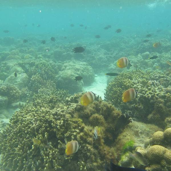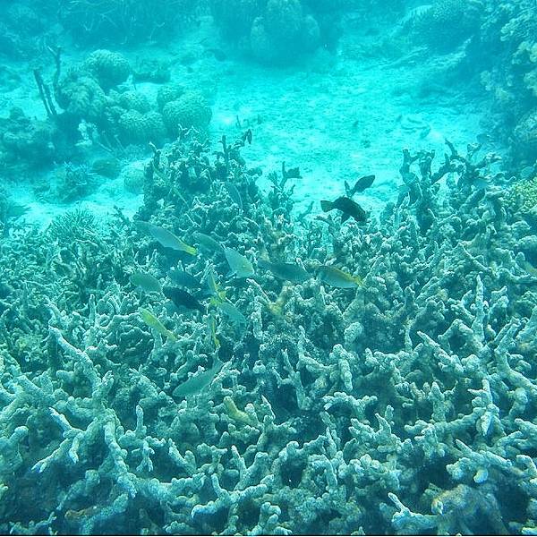 船只停靠的地方很多珊瑚都被踩死了,灰白一片,人啊类好好保护大自然吧。这里的鱼很多,浮潜的时候也可以带点面包,能引来更多鱼哦!!游远一点,浮潜就能看到美丽的海底世界啦~这里浮潜就可以看到日本军舰,可惜就剩下一些铁架了,没什么看头。本来行程上还有一个岛要去,但是大家已经玩的精疲力尽了,直接收船回去了。 展开