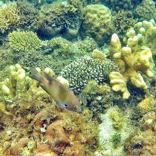 这里没有沙滩,是从船上直接入海浮潜的,这里的特点除了浮潜就可以看到日本军舰的沉船残骸外,水面下1~2米就可以看到活体珊瑚,非常适合浮潜爱好者!