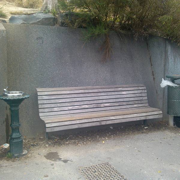 好不容易爬上坡顶,还以为能在优雅的环境中休息一下,可虽然旁边有张长木椅子,但周边垃圾很多,完全败坏了新西兰纯净的形象。或许是来的游客太多,带来了垃圾。