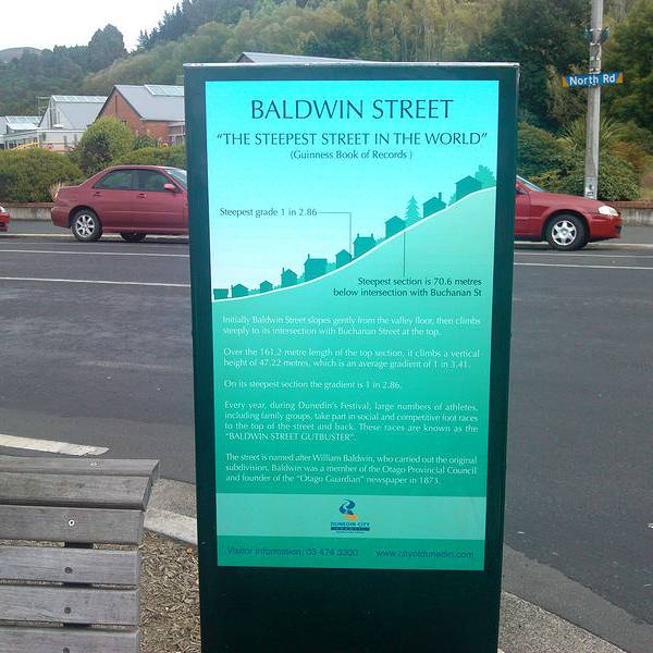 无论是用走的或是用跑的,要一口气到这条街的街顶都要费上好一番功夫。但是来到但尼丁不跑跑鲍德温街就好比到了北京不看故宫,到成都不吃火锅一样。