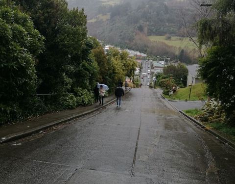 也没想到在南半球南岛最南边的城市市郊那么偏远的地方,有条街会吸引这么多目光,甚至排在人气榜首位,而原因竟然是它的坡度。此街不长,仅300多米,站在山下就能够看到头,头100米比较平缓,后面的坡度让人惊叹...