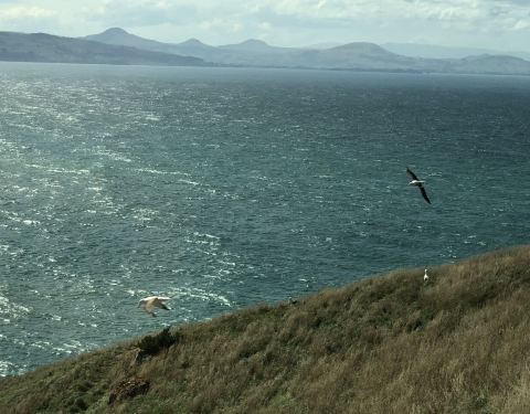 下山后沿着海湾一直往前开,我们要去位于半岛顶端的国家信天翁中心观赏一下世界上最会飞行的鸟儿,平...下山后沿着海湾一直往前开,我们要去位于半岛顶端的国家信天翁中心观赏一下世界上最会飞行的鸟儿,平均翼展达3米多宽。据科学跟踪观测,信天翁可以在9天时间里飞行数千公里,从南美大陆飞到新西兰。
