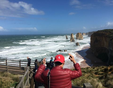 大洋路一早桉树林寻觅野生,眼尖又好运,一连发现好几只,引得来往车辆都泊车观望。十二使徒岩是大洋路的精华点。南极圈吹来的季候风,卷起惊涛巨浪,拍打着这片石灰岩的礁岸,塑造出鬼斧神工的“海岸雕塑”。