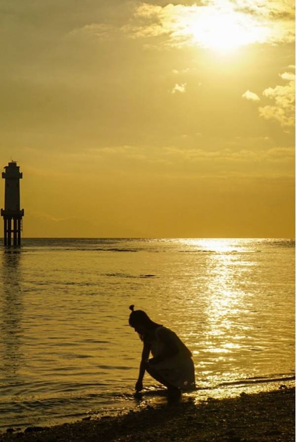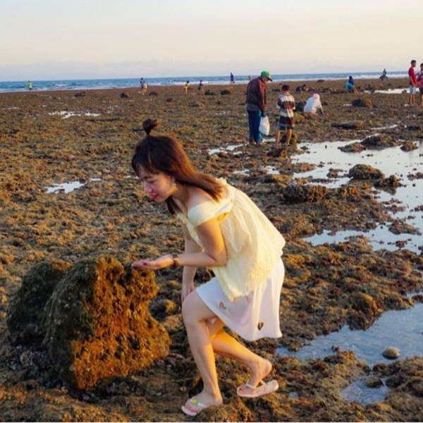 📷拍照姿势:由于黄昏的光线,建议侧脸或者剪影,海风吹坲着秀发,闪闪金光映照在海平面和身上像星星那样非常的好看。赶海的时候无需做作的看着镜头摆姿势,自然而然的拾起海边的小鱼小螺丝,拍下那一刻就给自己一个美好的回忆吧。