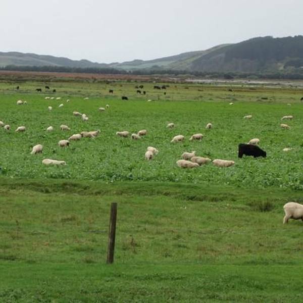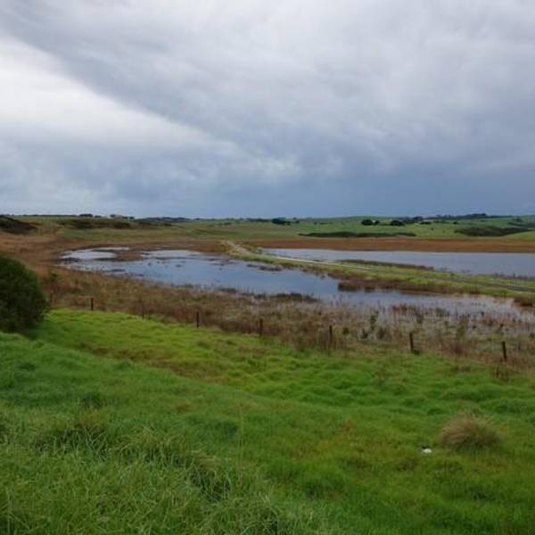中间蓝色的小湖,湖边的干草一片金黄,被绿色的草地和墨绿色的灌木包围离开灯塔,停雨了。路上又见到大面积的羊。