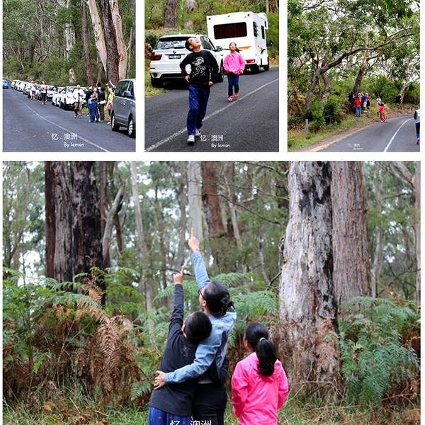 沿路开着,只要路旁有人群聚集,抬头围观,一定就有考拉在树上,屡试不爽。我们的一次靠边停车也引发陆续停了几乎一个车队的车,图1就全部是停在我们后面的车,煞是好玩。所有的人都在抬人,寻找树杈上的小肉团~~