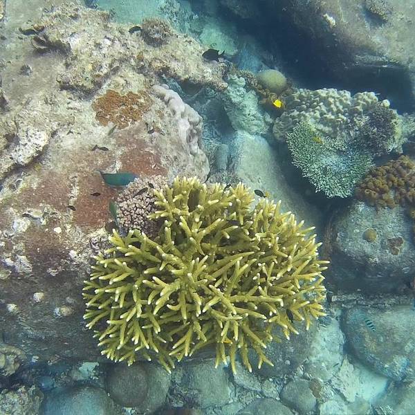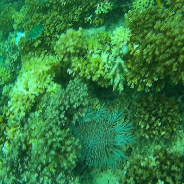 其实也是 一群一群的小鱼儿 不过还能看到珊瑚呢接着我们出海去了浮潜 去看了看岛上的海洋生态公园
