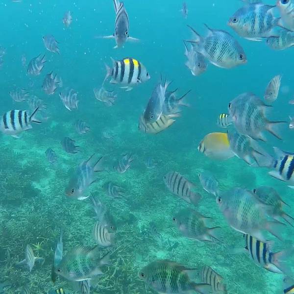 其实也是 一群一群的小鱼儿 不过还能看到珊瑚呢