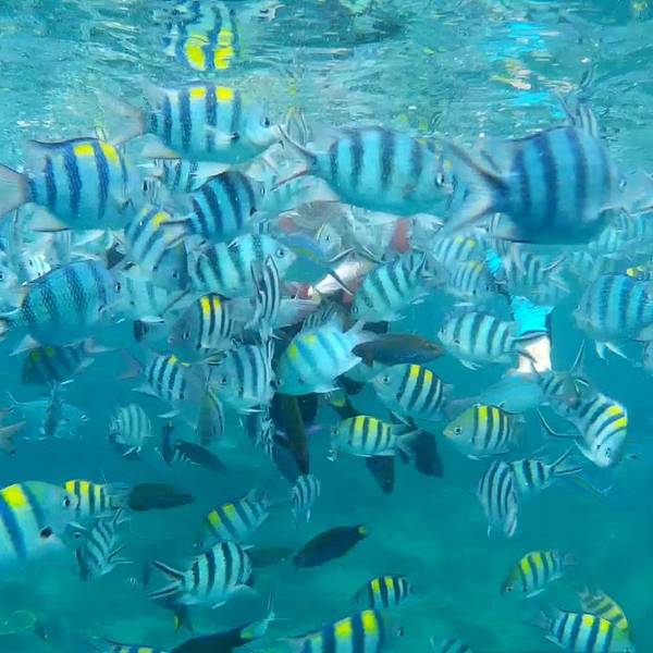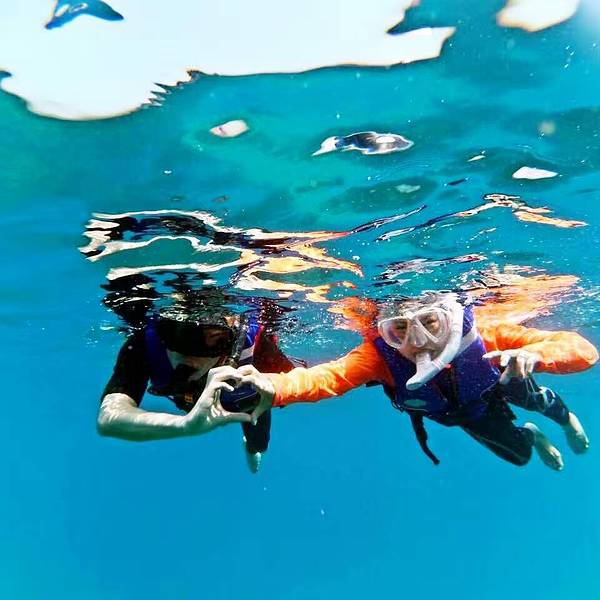 建议大家跟船出去潜水可以向前台要一个浴巾,回程的时候湿身真的好冷下午跟着船去了热浪岛海洋生态公园,带了一大包面包,鱼群就会在身边抢面包渣,浮潜环境很好