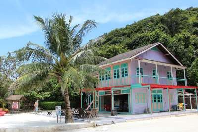 因为一部电影而成名的景点,但却是浪漫、美丽的一个。电影《夏日嬷嬷茶》使热浪岛名声大噪,因电影拍摄建起的五彩小木屋,后来成为热浪岛上热门的景点和留影点之一。现在小木屋虽然已经拆除,但在原址建造的一座红绿相间的房子仍然命名为“嬷嬷茶屋”,并且吸引着众多游客。现在这座房子一层是商店,二层是酒吧。至今小屋门前还保留着英文More More Tea Inn的蓝色招牌。小屋的侧面有一个用花朵凹出来的心型花环,非常适合情侣们在这里合影留念。另外,小屋不远处还有三个人形立牌,分别是当年电影中的三个男主角,赤膊着上身,穿着花裤衩,手里弹着吉他,再现了电影中的画面,让人们重温那段浪漫唯美的爱情故事。