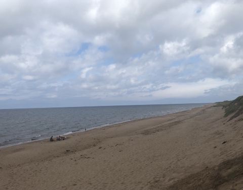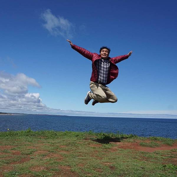 红崖沙滩,PEI最著名的景色。海角七号的感觉哦。第二天一早,感觉终于遇到了好天气。飞起来~第二天一早,感觉终于遇到了好天气。踏青PEI