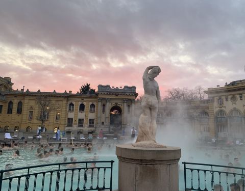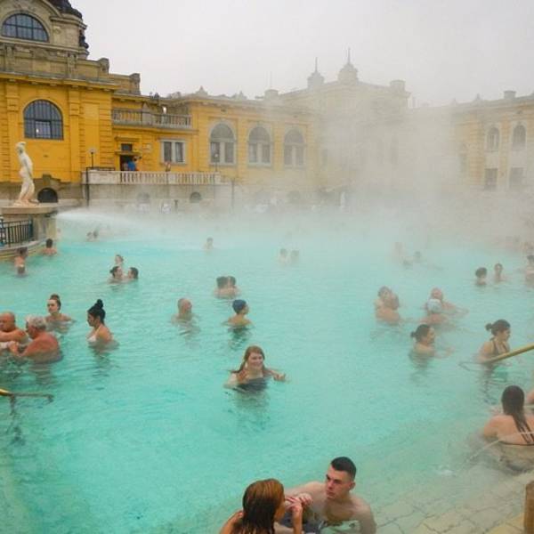 温泉是真的很美,即使是12月份去也没有那么冷。外面是两个温泉池,里面还有很多小池子,雾气缭绕的温泉是真的很美,即使是12月份去也没有那么冷。黄色的建筑虽然有些老旧但是掩盖不了美丽的气质。外面是两个温泉池,里面还有很多小池子,雾气缭绕的。还可以在卖门票的地方买按摩的套餐。挺贵的好像两个人120欧的...温泉是真的很美,即使是12月份去也没有那么冷。黄色的建筑虽然有些老旧但是掩盖不了美丽的气质。外面是两个温泉池,里面还有很多小池子,雾气缭绕的。还可以在卖门票的地方买按摩的套餐。挺贵的好像两个人120欧的样子,按的还凑合,欧洲的按摩感觉都是做做样子哈哈哈哈。 展开