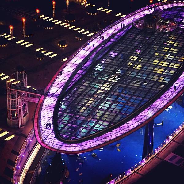 在14米高的水之宇宙船上散步,欣赏美丽夜景。